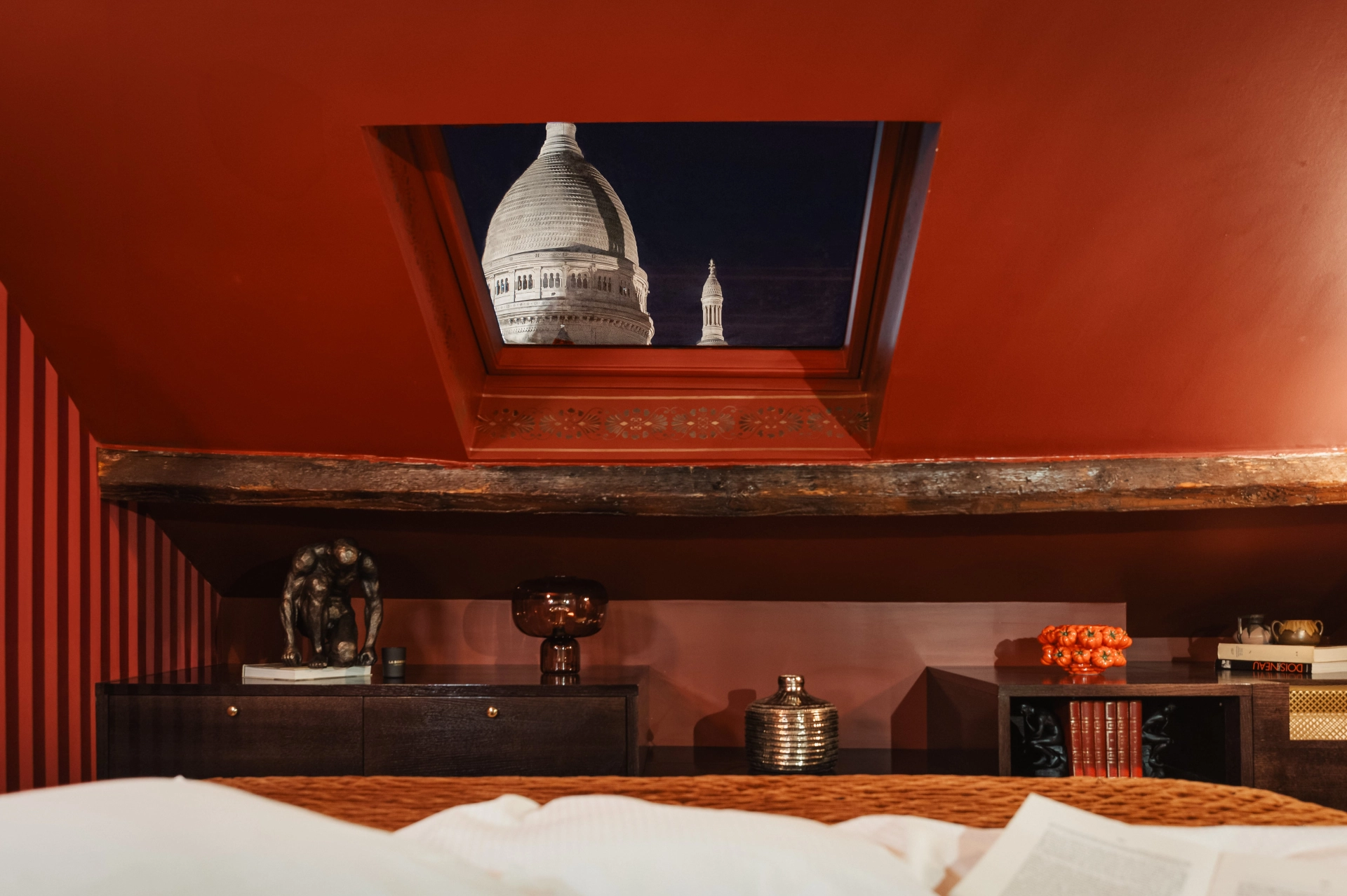 Exceptional duplex apartment, the Modigliani Apartment offers remarkable spaces and a unique experience in Montmartre for couples, families, or friends. From the bed, the view of the Sacré-Cœur creates a rare and spectacular moment. Equipped with a fully fitted kitchen, two bedrooms, and three bathrooms, this duplex combines independence, high-end concierge services, and access to partner gym La Montgolfière. Due to its exceptional character, the Modigliani Apartment is an ideal shooting location.