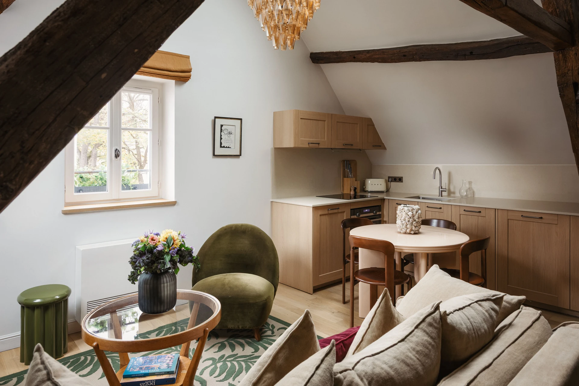 Appartement duplex aux volumes atypiques pouvant accueillir jusqu’à 6 personnes, L’Appartement Matisse a été pensé pour un séjour haut de gamme à Montmartre. Son espace en attique, sa cuisine équipée et son atmosphère élégante en font un lieu d’exception, avec conciergerie personnalisée et accès à la salle de sport partenaire La Montgolfière. Son caractère si singulier en fait un lieu idéal pour des shootings.