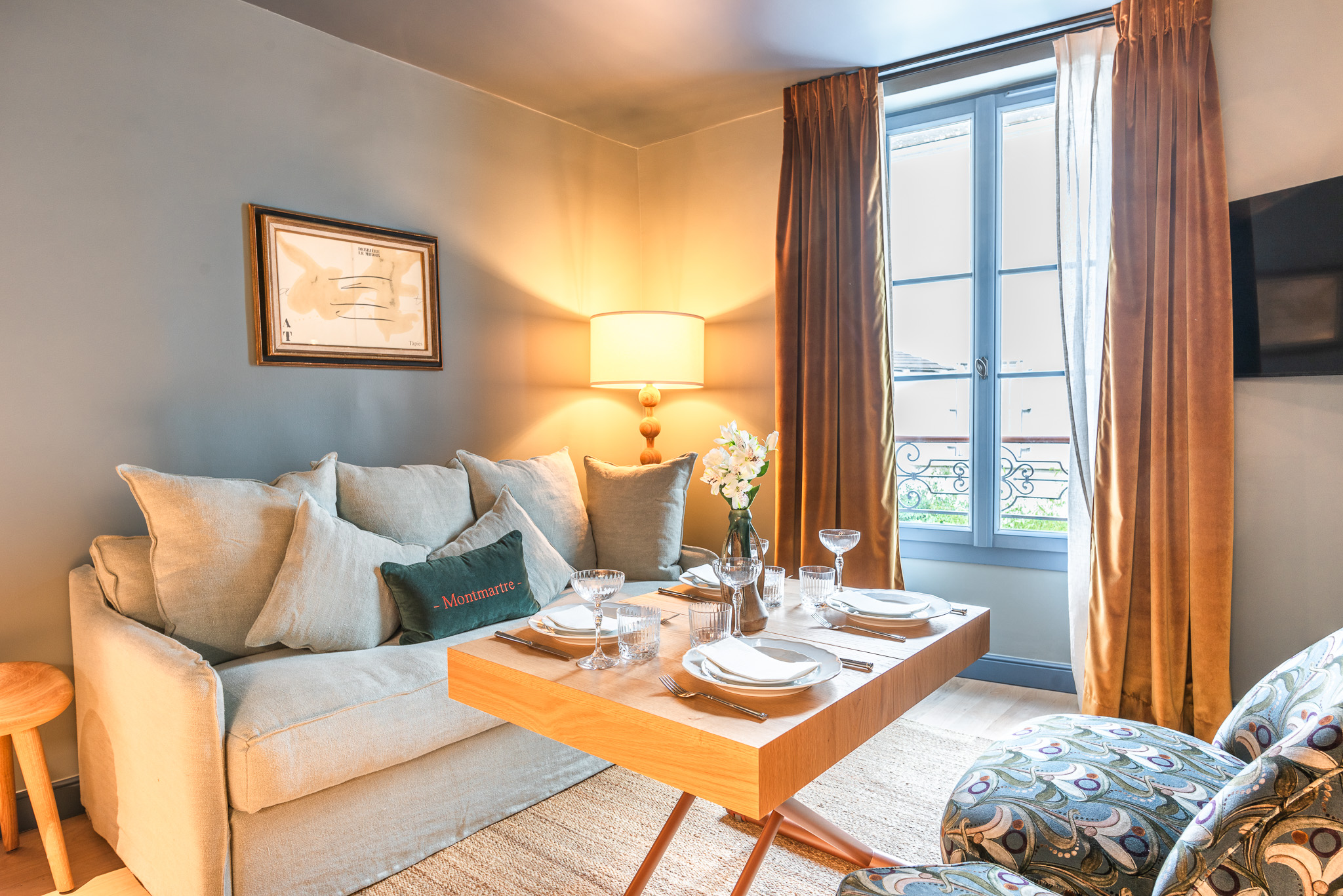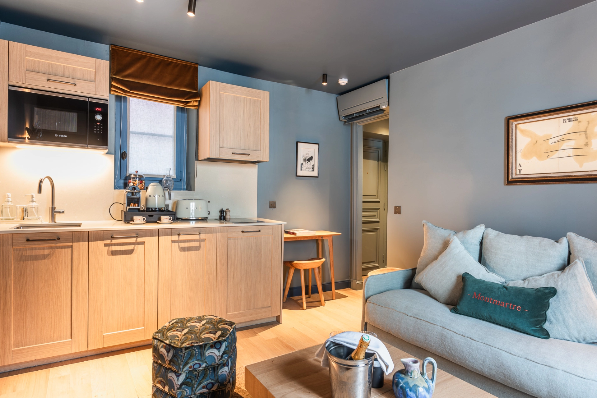 L’Appartement Monet est un appartement confortable et fonctionnel, offrant un cadre calme et feutré à Montmartre. Doté d’une cuisine équipée, d’une chambre élégamment agencée avec salle de bain attenante et toilette séparé, il permet un séjour à 2, 3 ou 4 personnes sans contraintes, avec l’appui de la conciergerie haut de gamme et l’accès à la salle de sport.